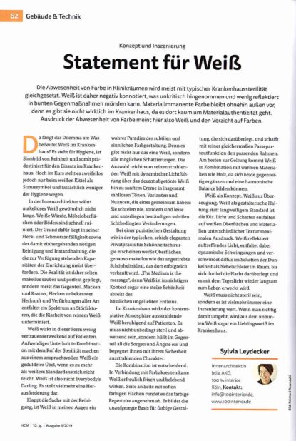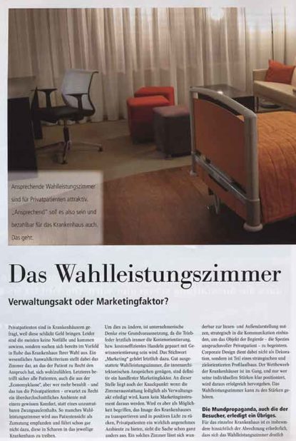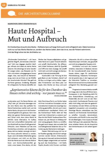 The Architecture Column “Milieu, Lebensstil und Zielgruppe – Gesunde Räume im Hospital”