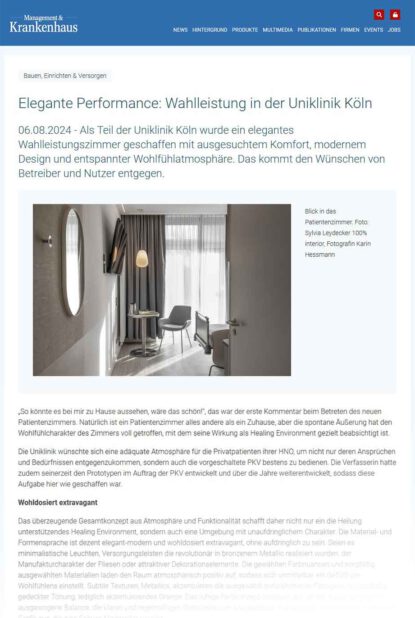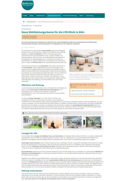 Online-Article, Healing Environments “Ausgewogene und nachhaltige Innenarchitektur zur Förderung der Gesundheit”